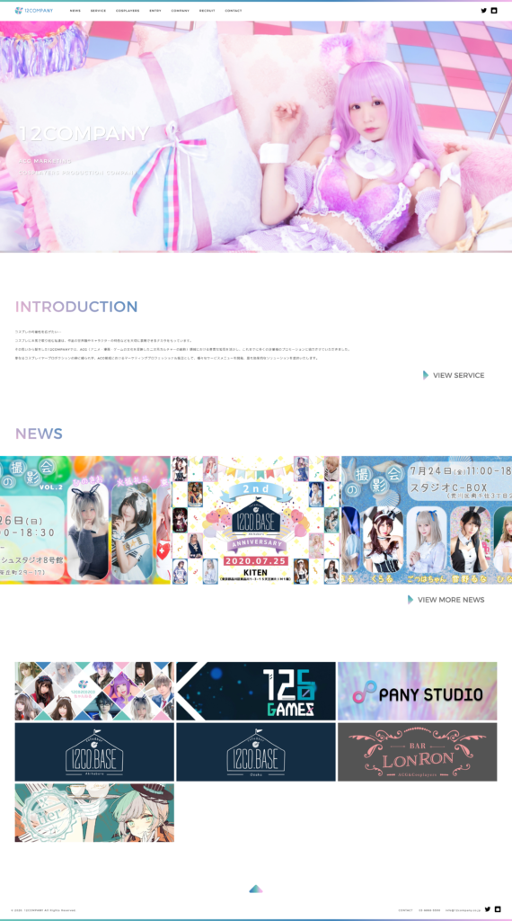 コーポレートカラーを用いたグラデーションを基とし、シンプルながらも写真が映えるよう制作。